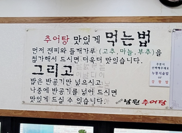 정말 맛있게 먹었어요. 원래 추어탕 안좋아한다는 말은 이제부터 취소하려구요.