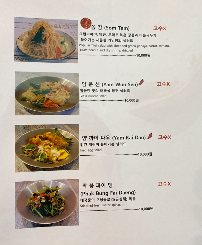 처음 태국 음식점에 갔을때 미나리볶음같은 밑반찬을 왜 이 가격으로 사먹어야되나.... 당황했었는데요. 공심채볶음의 매력에 빠지면 주문을 꼭 하게 됩니다. 그냥 먹어도 맛있고, 밥이나 면이랑 먹어도 너무나 맛있어요.