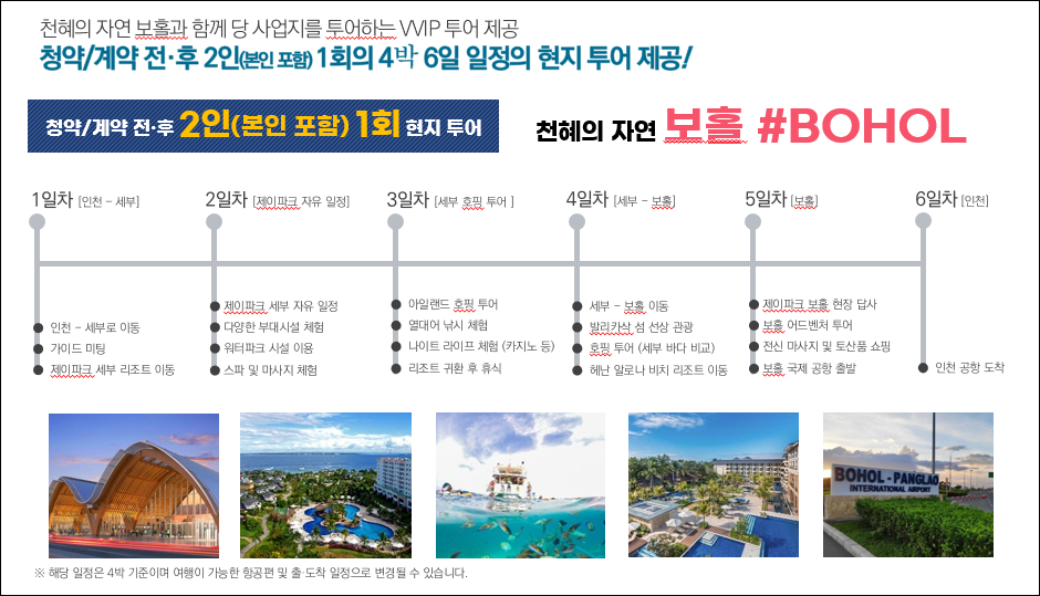 아름다운 휴양지에서의 휴식과 안정된 수익을 알아보신다면 꼭 엘 카스카디 제이파크 보홀을 직접 알아보시길 바랍니다. 자료만 보고 판단하지 마시고, 상담을 받아보신 후에 판단하시길 권해드립니다.