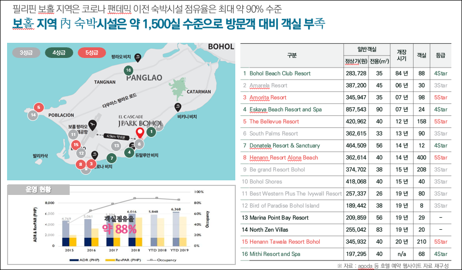 보홀은 세계 5대 다이빙 스팟 중에서 3곳을 보유하고 있고 여러가지 볼거리들이 모여있고, 게다가 팡라오 공항이 생기면서 관광 명소로 자리잡고 있는데요. 사실 호텔 시설이 부족하여, 오래되거나 규모가 작은 호텔이나 리조트도 대부분이 만실이고, 가격 또한 꽤 높게 책정이 되어 있습니다.