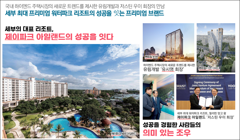 엘 카스카디 제이파크 보홀은 제이파크 세부의 대표이자 필리핀의 망고왕인 저스틴 우이 회장과 팬트힐 논현과 펜트힐 캐스케이드의 유림개발 유시영 회장의 합작품이라고 보시면 되는데요.