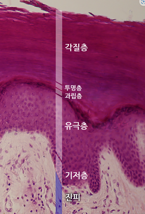 위의 사진은 피부의 표피층을 볼 수 있는 사진인데요.
