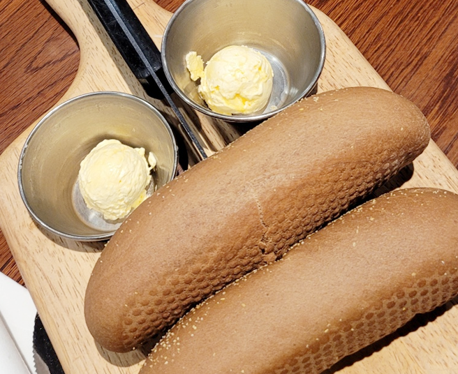 저희는 빵을 처음부터 2개 가져다 달라고 했어요. 1개는 저 혼자 먹고 나머지 1개는 아이와 남편 나눠먹으라고요. 더 먹고싶었지만, 더 먹으면 스테이크를 못먹는다고 남편이 말렸습니다.