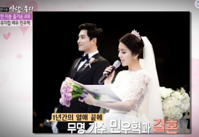 민우혁은 군대 제대 후 지인의 소개로 아내 이세미씨를 만났습니다.
