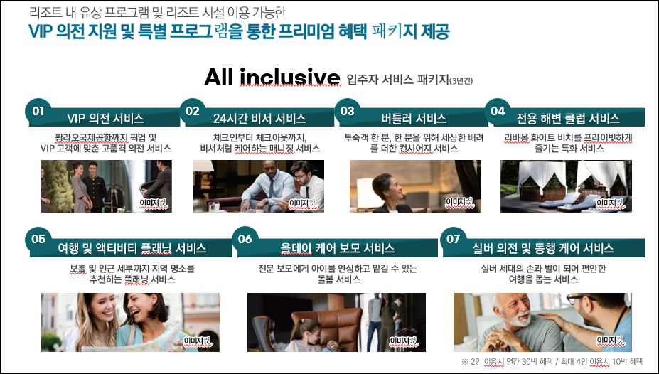 제이파크 세부 VVIP 프리미엄 여행 뿐만아니라, 보홀 최초 오션뷰 27홀 골프장 회원권, 스파, 레스토랑, 바, 픽업서비스, 키즈 서비스, 실버 케어 서비스 등 여러 혜택을 제공합니다.
