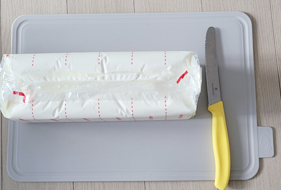 크림치즈는 딱딱한게 아니라서 그냥 과감하게 자르면 됩니다.