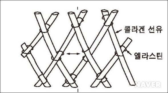 엘라스틴은 콜라겐과 함께 피부 결합조직에 존재하는 고무탄력성과 같은 신축성이 있는 단백질입니다.