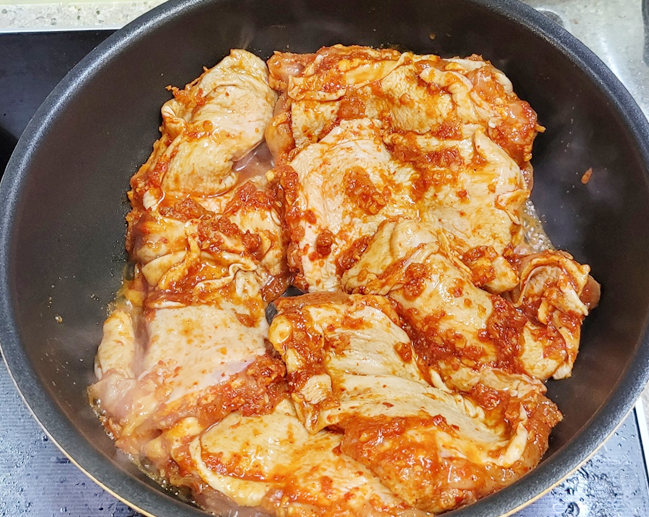 동생네는 에어프라이어에 굽는다고 합니다. 저는 미니멀라이프 한다면서 얼마전에 에어프라이어를 버렸어요... 별로 안쓰는것 같아서 버렸는데, 이럴때 아쉽네요. 다시 구입을 해야되나....? 오븐은 청소하기 귀찮고... 그래서 저희는 후라이팬에 양념 닭갈비 해먹듯이 요리하기로 결정했습니다.