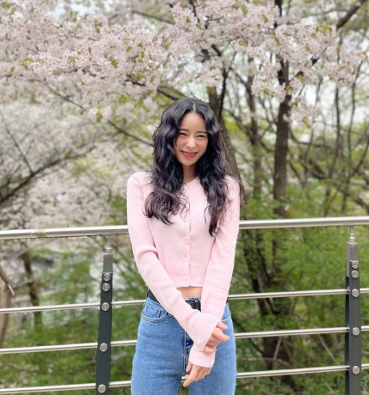 분홍색 가디건이 너무나 상큼하게 잘 어울리고, 청바지를 입은 몸매가.... 정말 믿기지 않을정도로 날씬합니다.