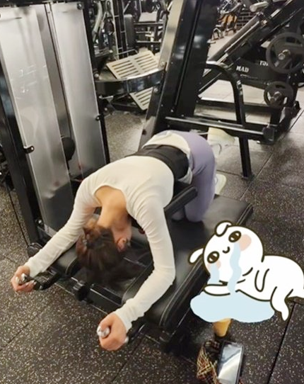 최강희는 헬스장의 기구를 사용해 운동에 집중하고 있는 모습. 지쳐서 주저앉는 모습도 공개를 했습니다.