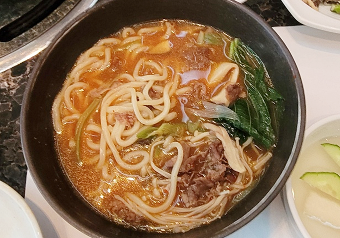 맛은 정말 얼큰하니 맛있어요. 기대 이상이라서 놀랐습니다. 함께 간 분은 원래 국수를 좋아하는 편이 아니라고 하는데요. 이 고기국수는 국물 맛도 너무 좋고, 면도 맛있다고 하시네요.