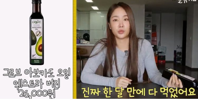 소유가 선택한 오일은 바로 아보카도 오일입니다. 오메가 9이 풍부해 체내 지방 분해에 도움을 주고 신진대사를 활성화합니다. 한 달에 한 병을 다 먹을 정도로 열심히 여기저기 뿌려 먹었다고 하네요.